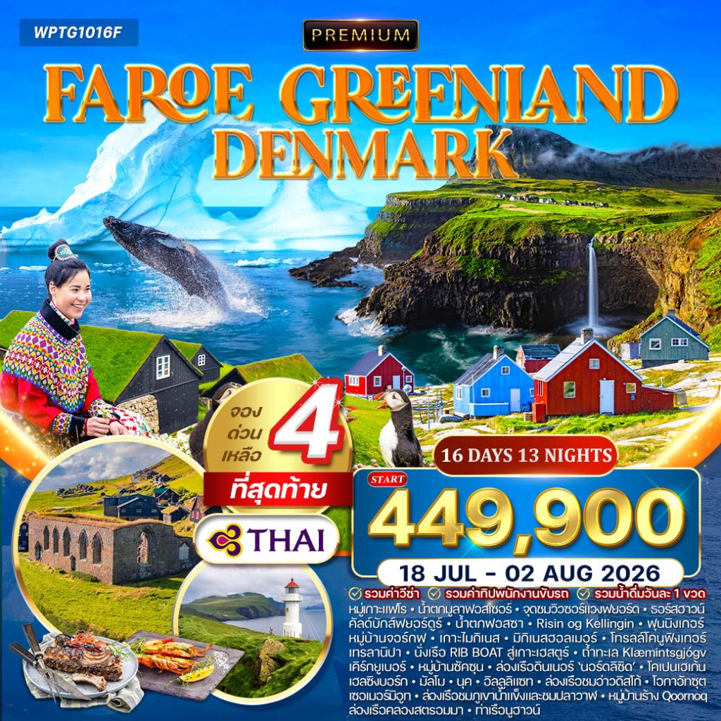 ทัวร์พรีเมี่ยมเดนมาร์ก - กรีนแลนด์ Eqi Glacier 14 วัน TG Jun - Aug 26