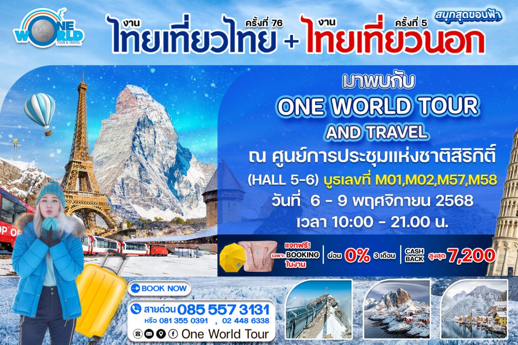 พิเศษสุด เมื่อ Booking ภายในงานรับฟรี ร่มพับพกพา! One World Tour & Travel สุดพรีเมี่ยม หรือ กระเป๋า Shopping Bag ขยายได้ใส่เสื้อผ้าได้ น้ำหนักเบาเหมาะแก่การพกพา