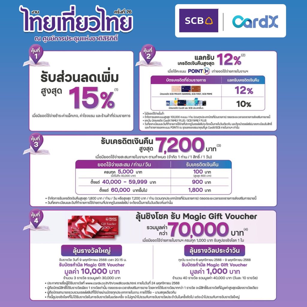 1. 💳 บัตรเครดิต CardX (SCB) – เน้นส่วนลดและลุ้นโชคใหญ่