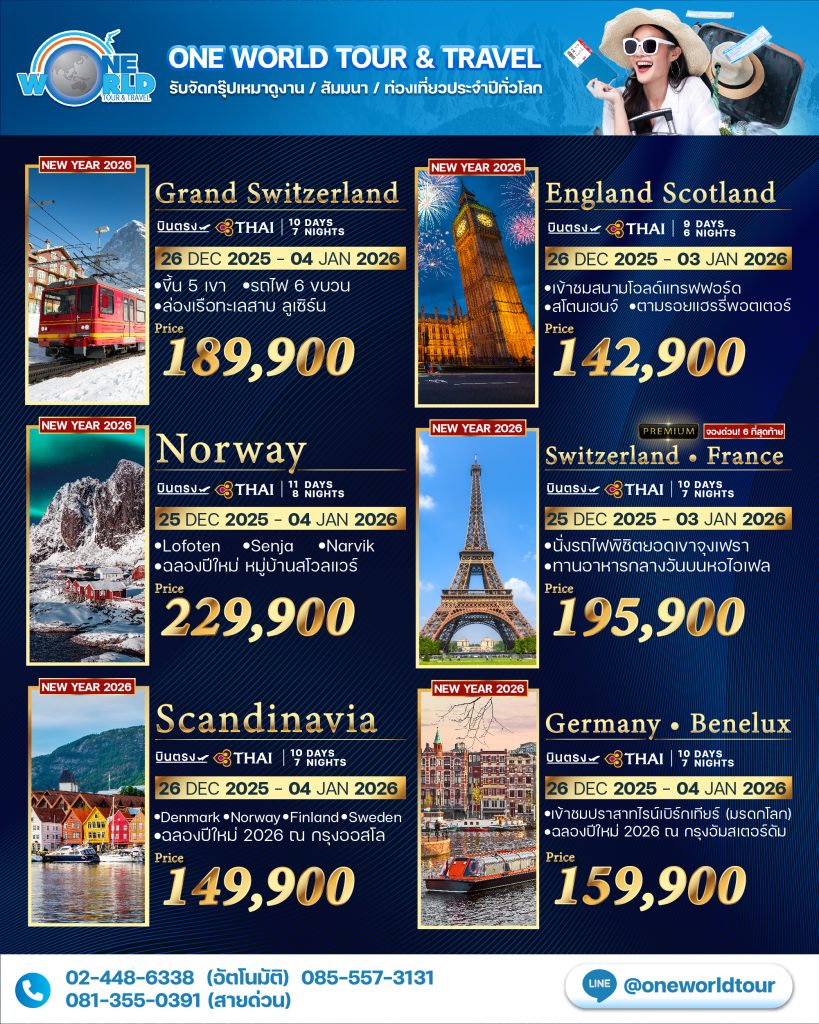 @oneworldtour 🎉 สัมผัสประสบการณ์เหนือระดับกับ PREMIUM GRAND NORWAY 11 วัน 8 คืน 🇳🇴 ✈️ บินตรงกับการบินไทย (TG) 📅 เดินทาง 25 ธ.ค. 68 – 4 ม.ค. 69 💰 ราคาเริ่มต้น 209,900 บาท (รวมค่าที่พัก โรงแรม 4 ดาว, อาหาร, และกิจกรรม) 🔗 รายละเอียดโปรแกรม: เข้าเว็บไซต์ www.oneworldtour.co.th ค้าหาโปรแกรม owtt250178 ➖➖➖➖ เที่ยวรอบโลกไปด้วยกันกับ วันเวิลด์ทัวร์ คุ้มค่าทุกระดับของการเดินทาง🌍✈️💯 #oneworldtour #วันเวิลด์ทัวร์ #oneworldtourandtravel #GRANDNORWAY #นอร์เวย์ #แสงเหนือ #ทัวร์นอร์เวย์ #เที่ยวนอร์เวย์ #ทริปยุโรป #Lofoten #Senja ♬ original sound – One World Tour & Travel