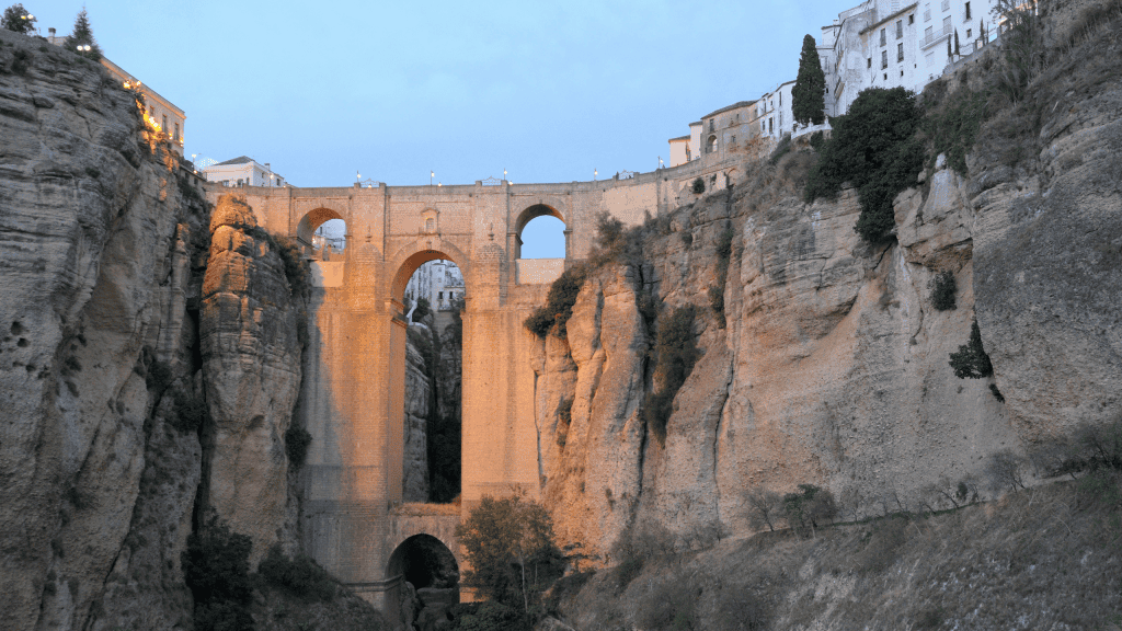 สะพาน Puente Nuevo หรือสะพานใหม่ที่มีชื่อเสียงที่สุดของรอนดาที่ปรากฏในภาพโปสการ์ดสุดคลาสสิกของเมือง ซึ่งเป็นซุ้มประตูสามโค้งขนาดยักษ์ที่มีเสายาว 120 เมตรลงไปที่ส่วนลึกของหุบเขา ที่เปิดใช้ในปี 1783 หลังจากใช้เวลาสร้าง 40 ปี นอกจากนี้ยังสะพานเก่าแก่อีกสองแห่ง ได้แก่ สะพาน Puente Viejo (สะพานเก่า) และสะพานซานมิเกล (Bridge of San Miguel) หรือที่เรียกว่า ‘สะพานอาหรับ’